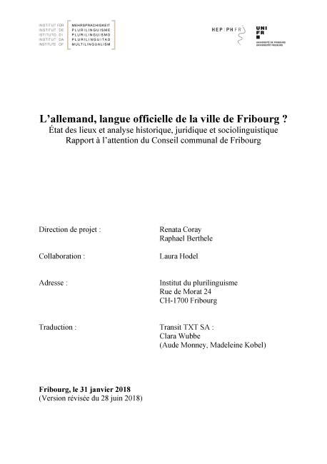 Rapport à l’attention du Conseil communal de Fribourg, Fribourg, 31 janvier 2018, (version révisée du 28 juin 2018)